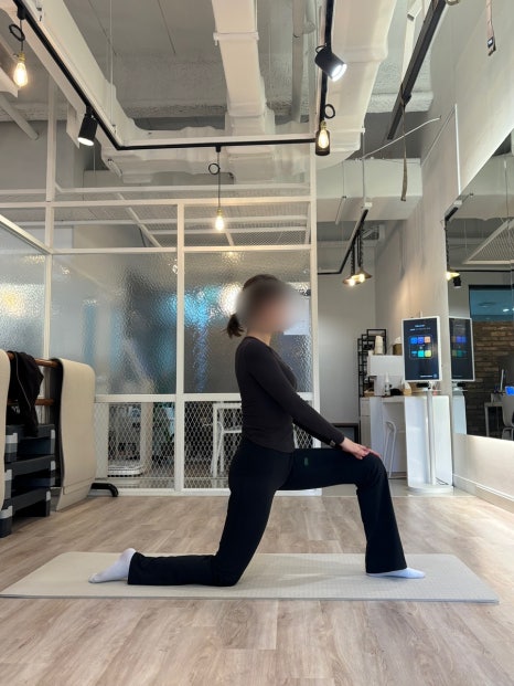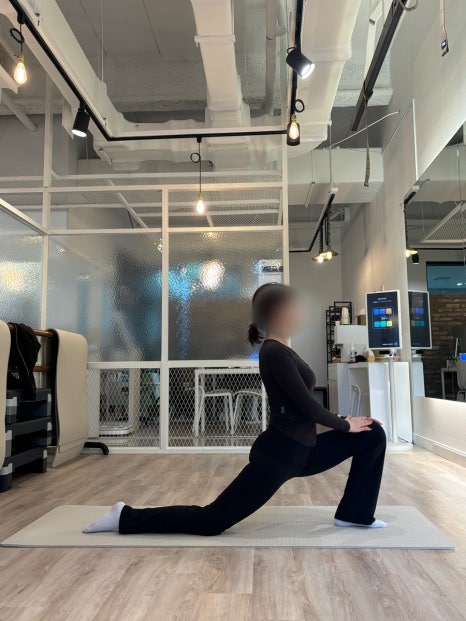 한쪽 무릎을 바닥에 대고 런지 자세를 취합니다.